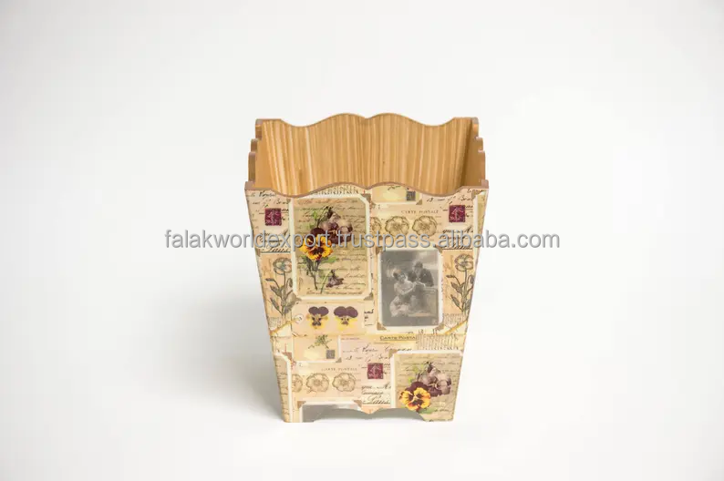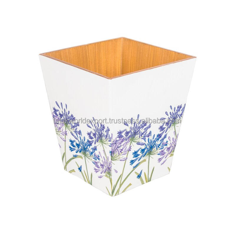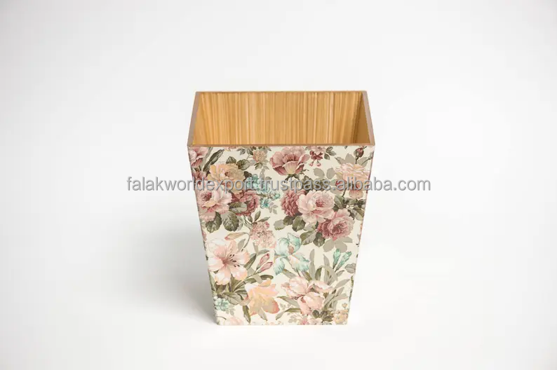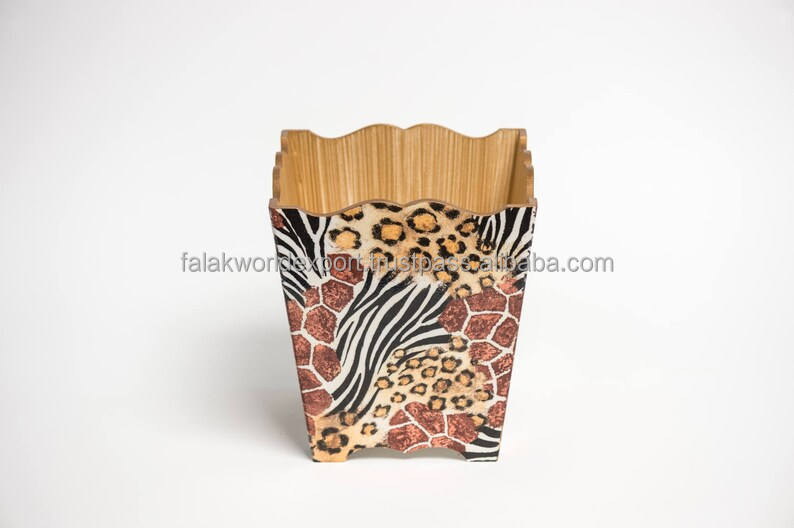 Nouvelle poubelle en bois MDF émaillé à impression abstraite avec conception de structure debout assortie de Falak World Export
