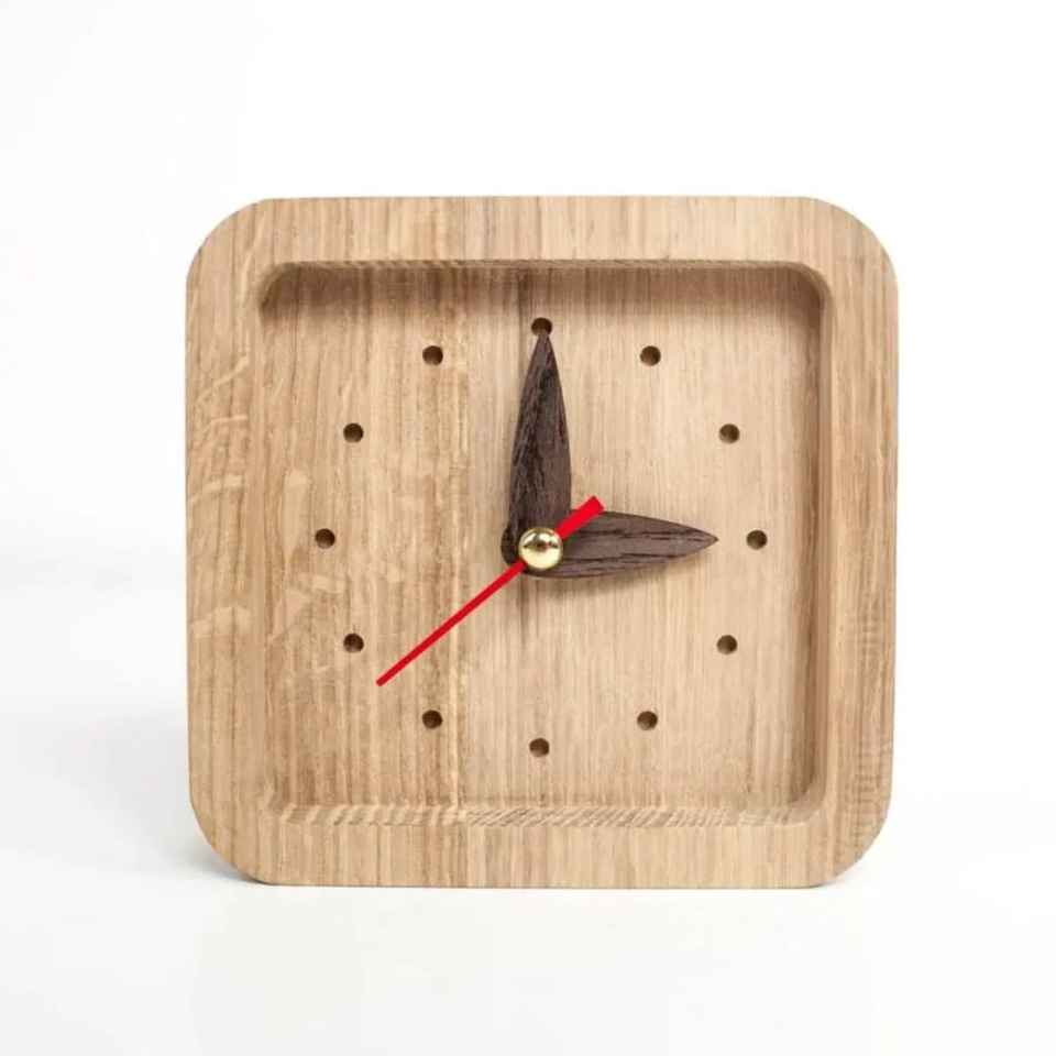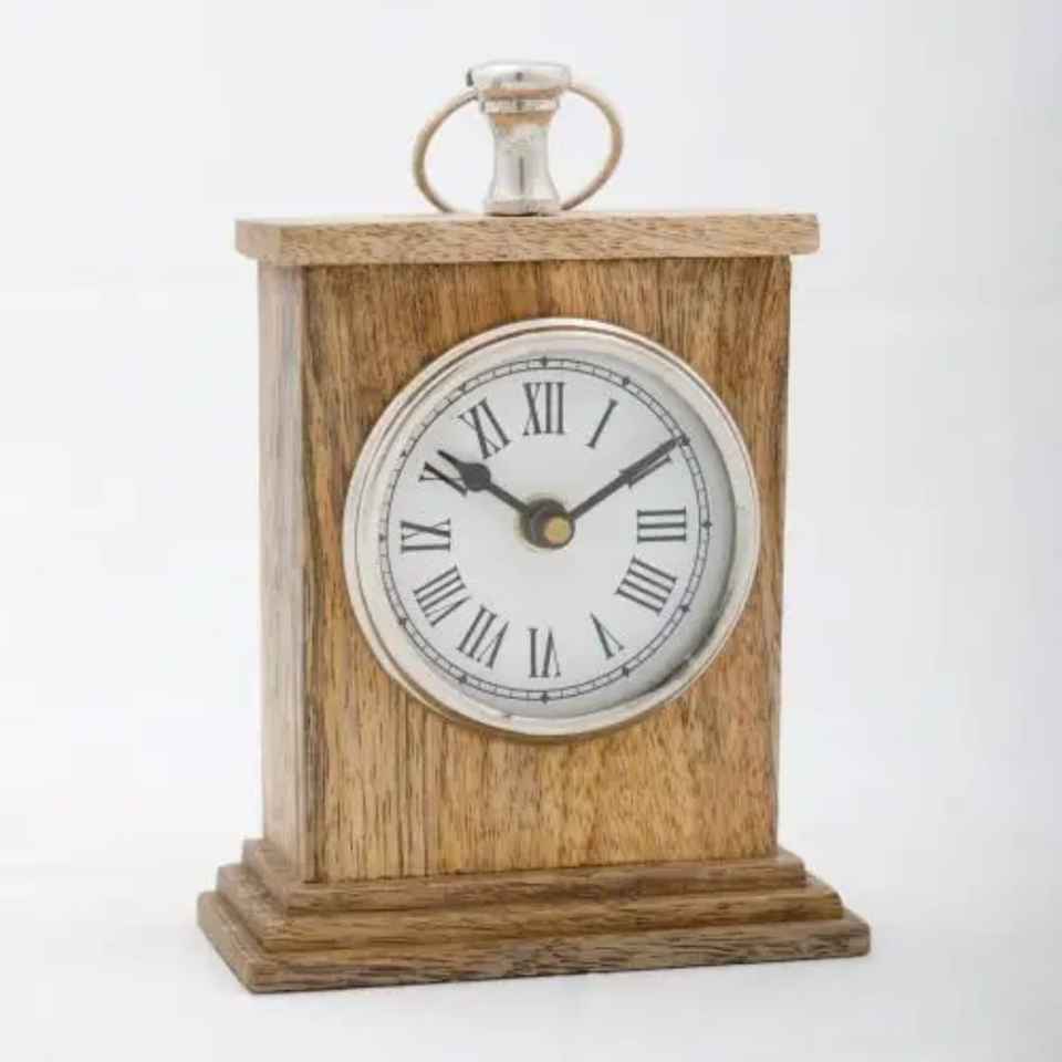Horloge rectangulaire en bois à chiffres romains, compacte, d'inspiration vintage, artisanale, durable, pour la maison ou le bureau