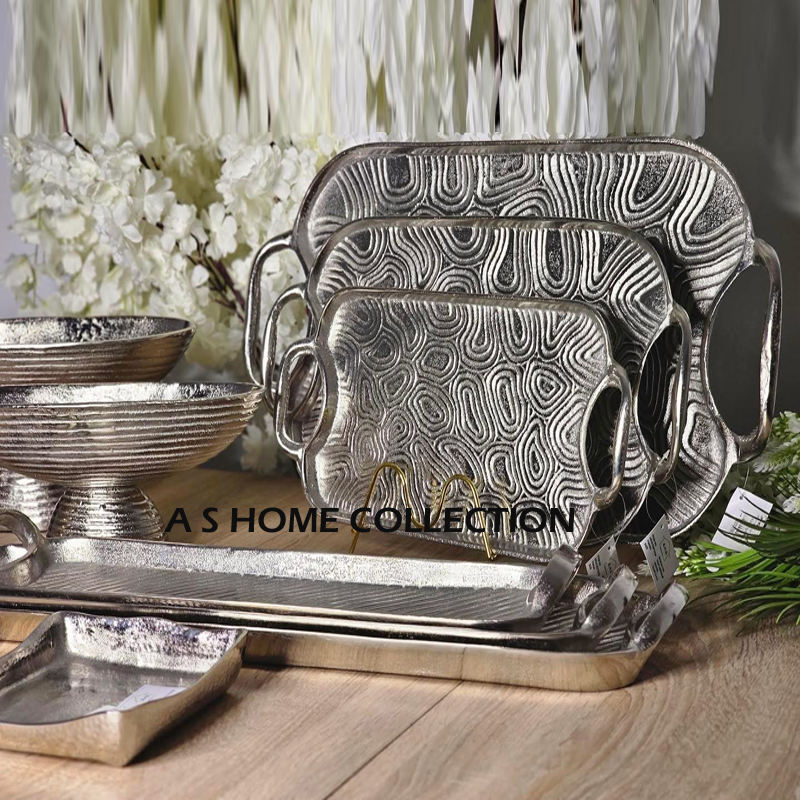 Forme rectangulaire en bois Golden Flower Design Poignée Classique Élégant Plateau de service personnalisé de qualité supérieure