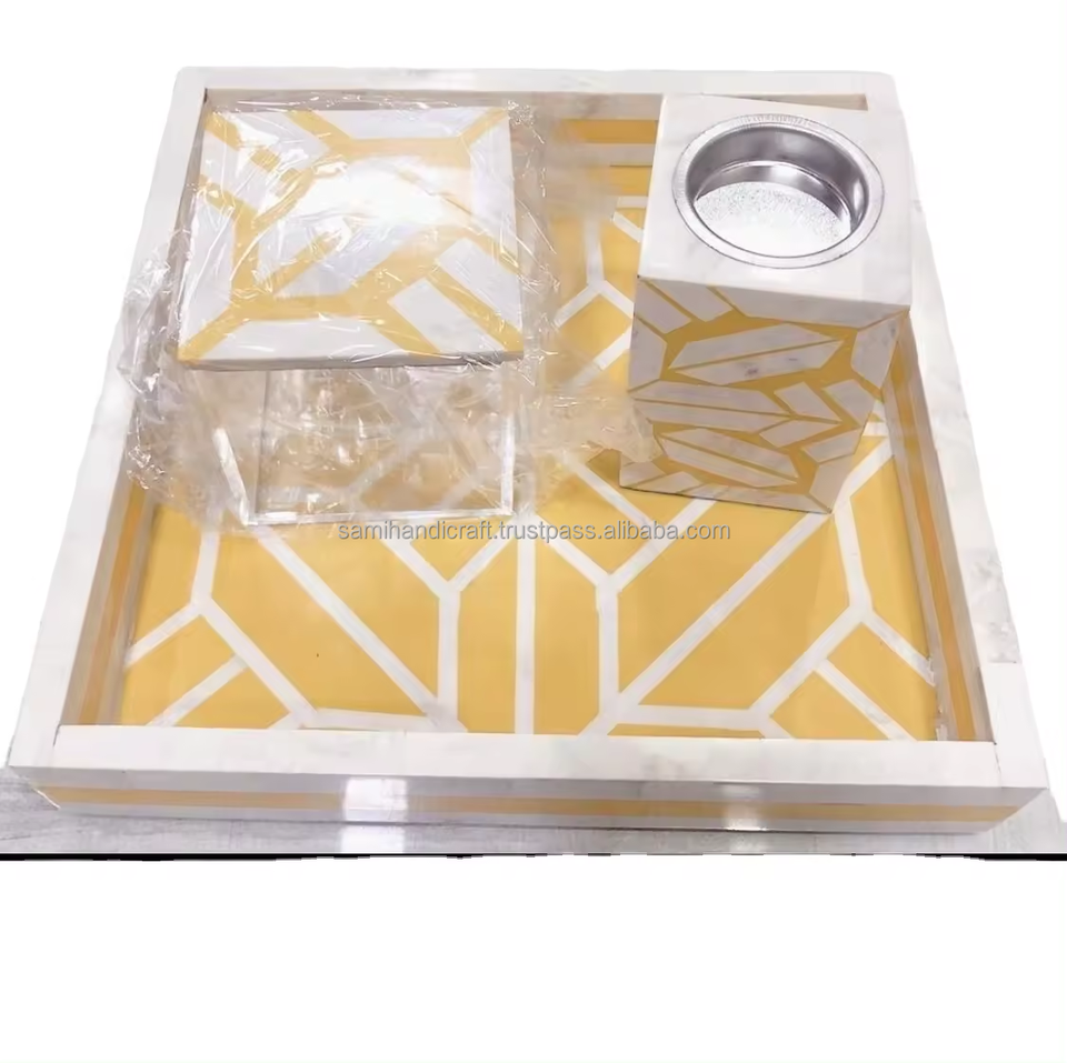 Boîte et plateau de brûleur à incrustation d'os en bois et résine bougeoir T support de lumière artisanat indien brûleur Bakhoor brûleur Oud Bakhioor