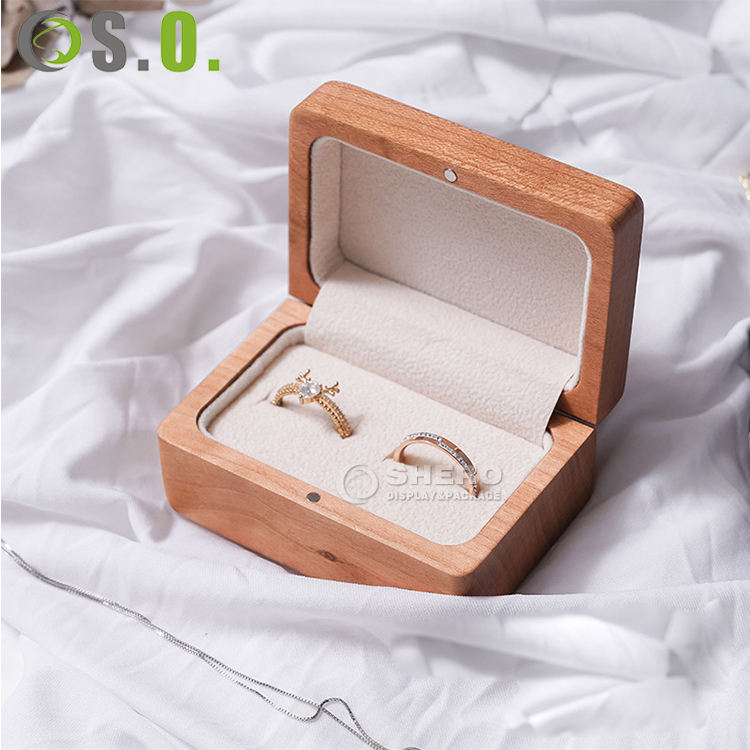 Boîte de rangement pour bagues en bois avec couvercle, petite boîte organisatrice de bijoux pour bagues