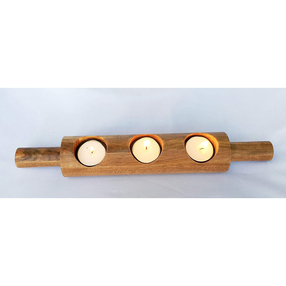 Bougeoir à bougie chauffe-plat en bois avec 3 bougies chauffe-plat-sculpté à la main sur une base en bois Lot de 1 pour article de décoration de la maison Diwali