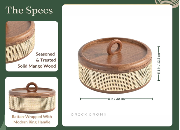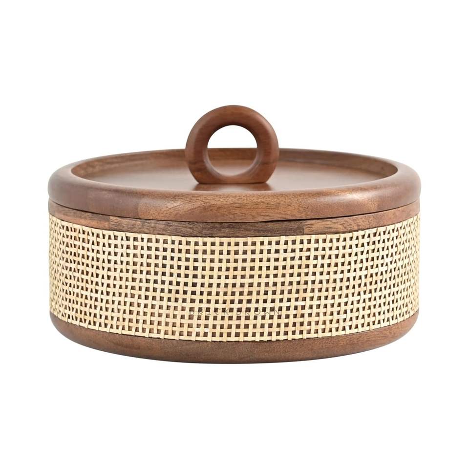 Boîte à roti en bois avec couvercle en cannage tressé, fait main, pour le rangement des chapatis, service traditionnel de dabba pour la cuisine et la table à manger