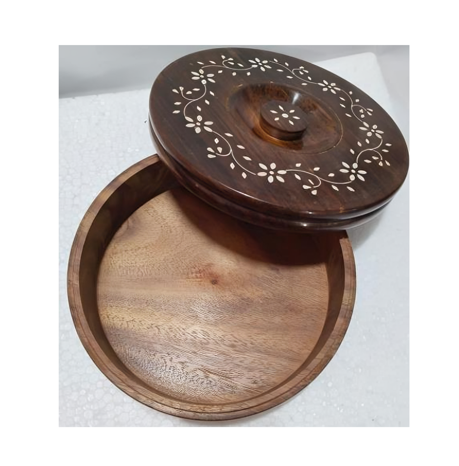 Boîte Roti en bois avec couvercle pour chapatis chaud idéal pour la maison cuisine table à manger mariages restauration et service de dîner spécial