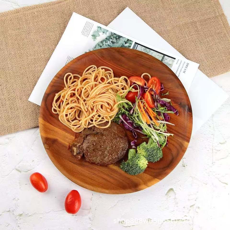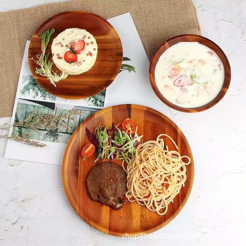 Plateau rond en bois massif de 11 pouces, plateau de service pour thé, café, dessert, utilisation à la maison et en cuisine