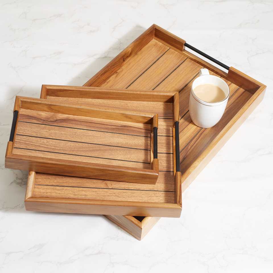 Service en bois vaisselle bambou naturel plateau de Service de restauration rapide avec poignée ensemble de plateaux en bois de luxe servant en bois rectangulaire