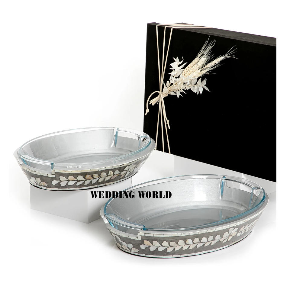 Plateau de service en bois ensemble de deux plateau de créateur fait à la main classique élégant en gros nouveau plateau de service en bois
