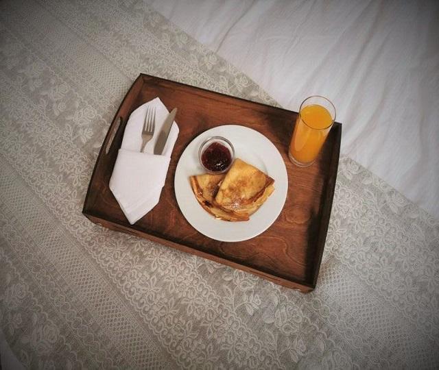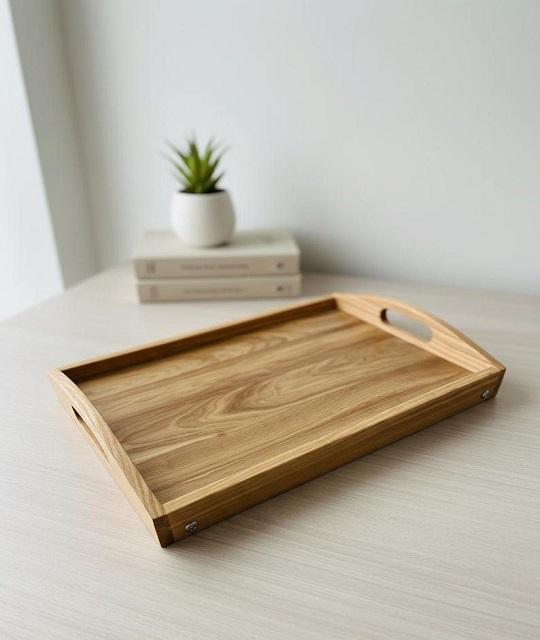 Plateau de service en bois avec poignées, lot de 2 plateaux décoratifs pour le petit-déjeuner au lit, le déjeuner, le dîner, la table basse