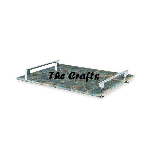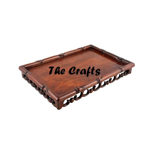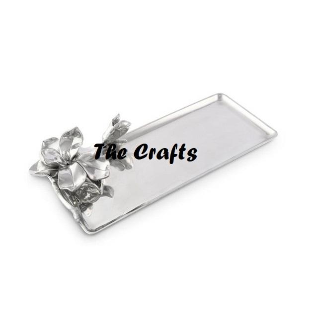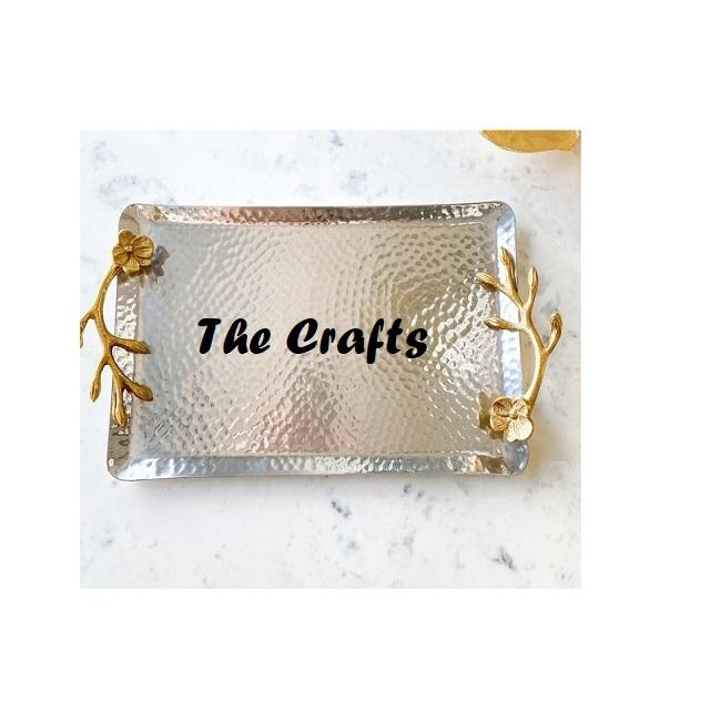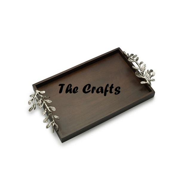 Plateau de service en bois en vrac avec poignées de feuille en métal argenté Plateau de service de restaurant et d'hôtel de la plus grande qualité