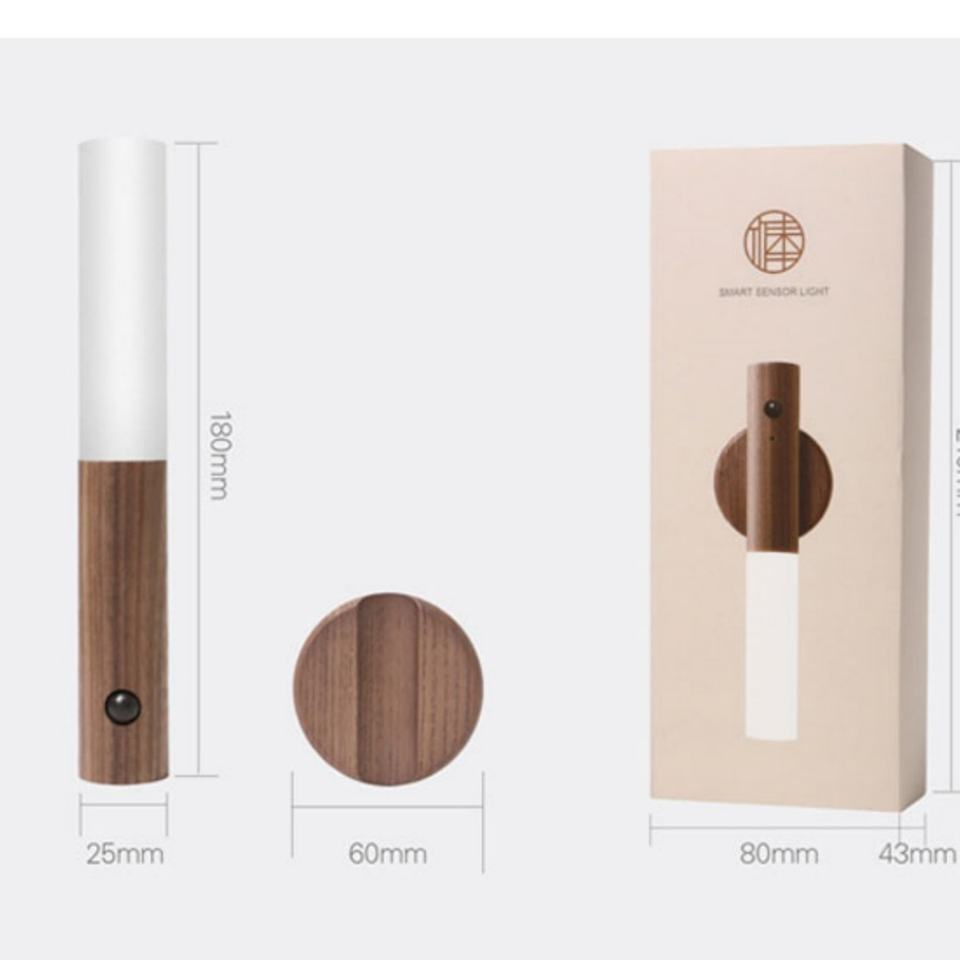 Lumière LED intelligente en bois avec détecteur de mouvement, rechargeable par USB, indice de protection IP20, 2700~3000K, 1W, usage domestique