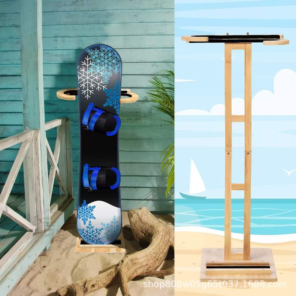 Support de rangement en bambou massif pour snowboard, étagère de présentation pour station de ski, couleur naturelle, simple niveau