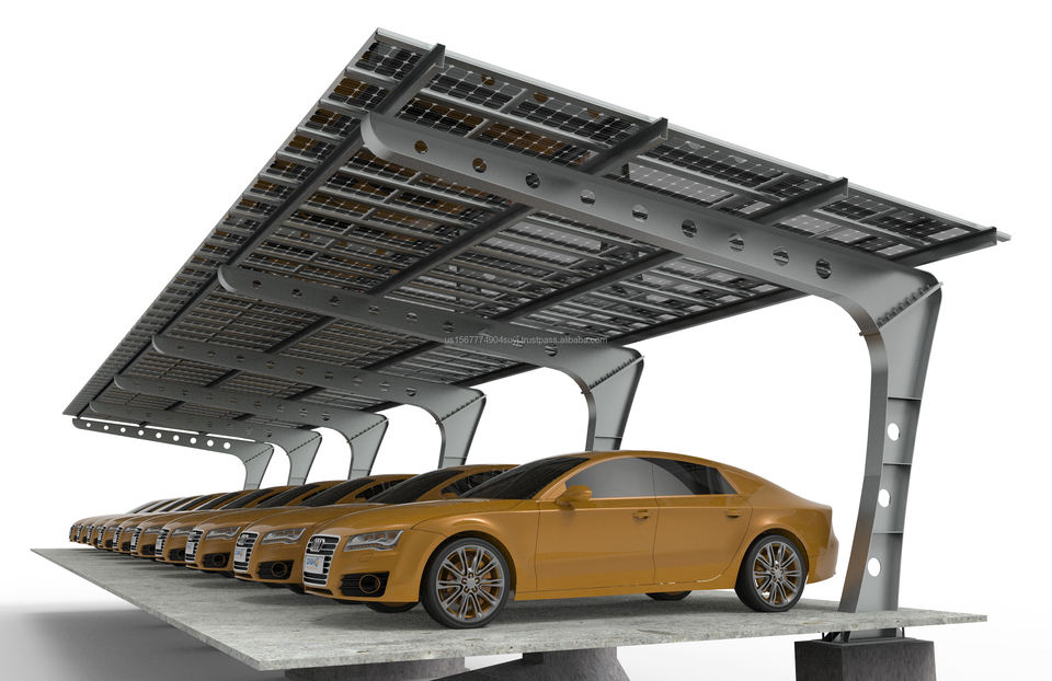 Wooden Solar Carport with Waterproof Groove and Solar Panel on Top Ground Mounting System for Cars and Garages