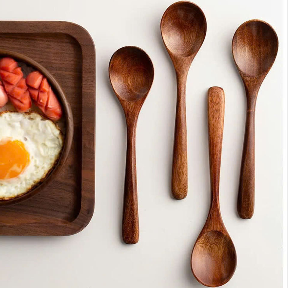 Wooden Spoons, Wood Soup Spoons for Eating Mixing Stirring, Long Handle Spoon with Japanese Style Kitchen Utensil made by hand