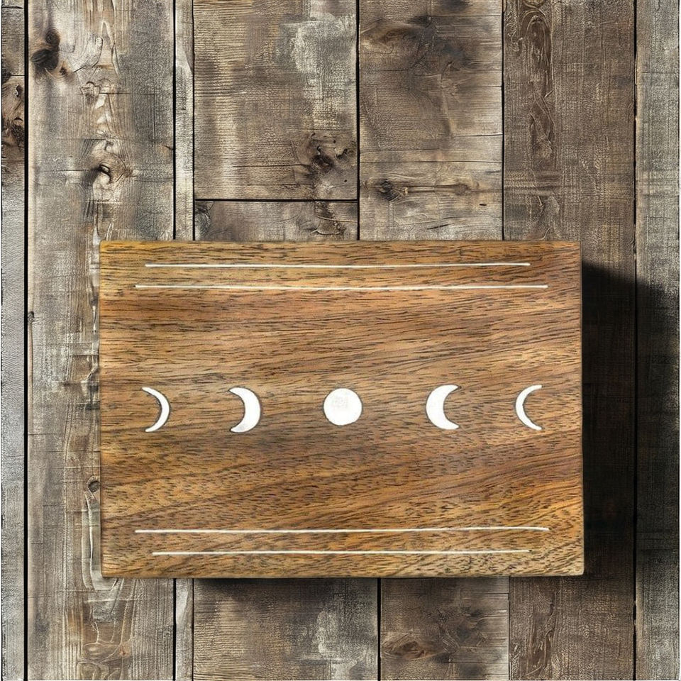 Boîte de rangement en bois avec couvercle à charnières, en bois d'acacia, artisanale, pour recettes, rangement décoratif ou comme boîte à souvenirs.
