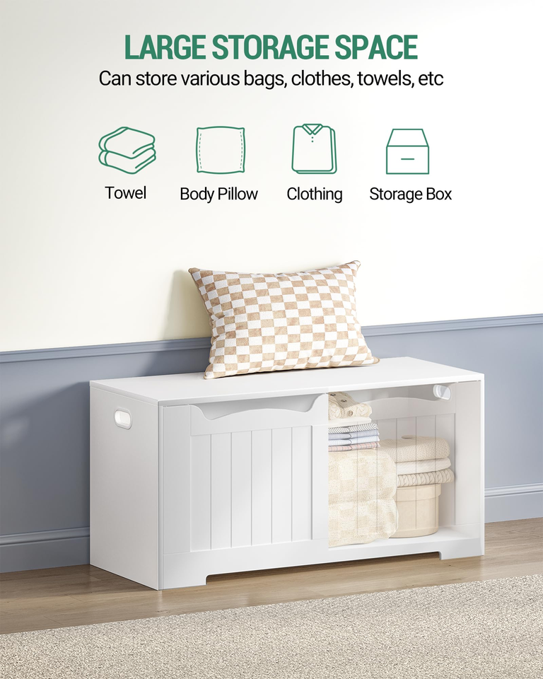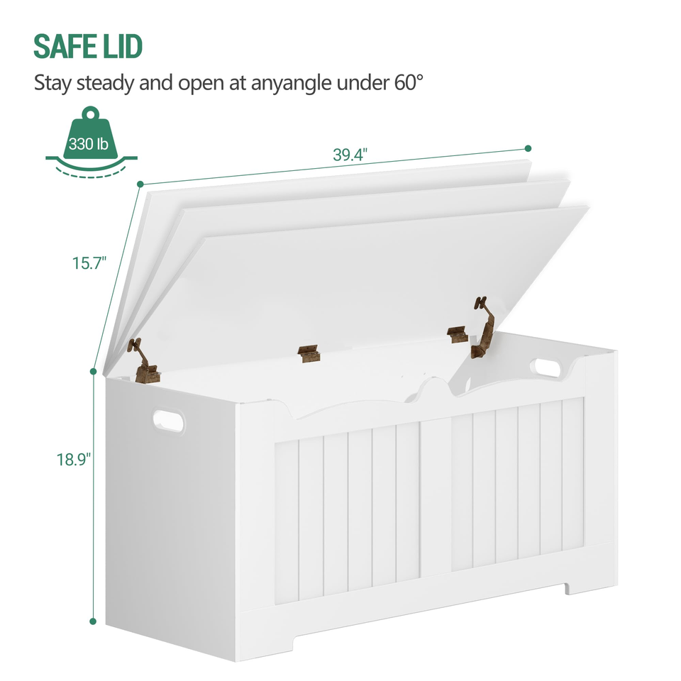 Banc de rangement en bois avec 2 charnières de sécurité-Coffre organisateur relevable pour entrée, chambre et salon