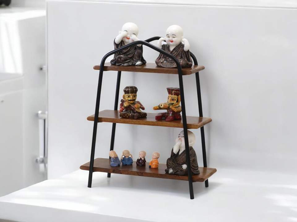 Étagère de rangement en bois pour cuisine, salle de bain | Étagère de rangement pour comptoir avec étagères en bois de manguier et en fer pour chambre à coucher, bureau