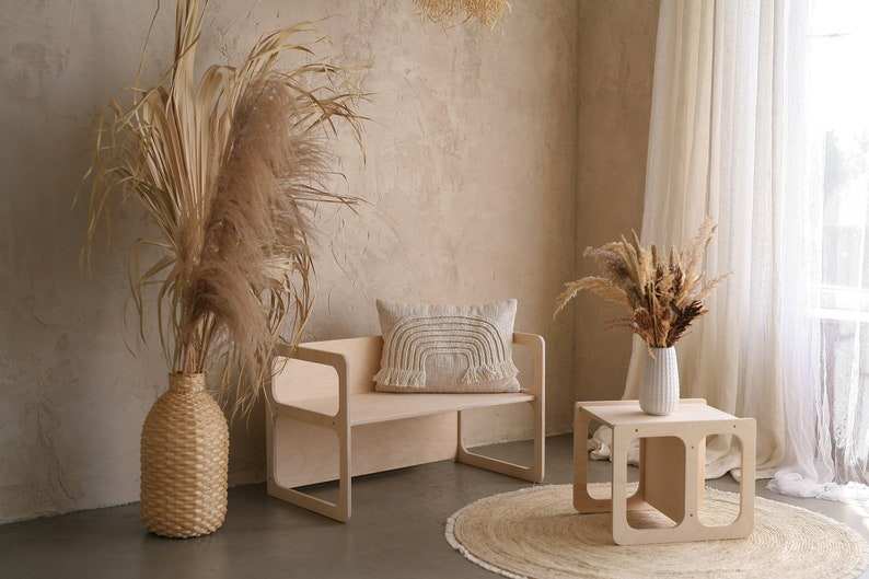 Ensemble de table en bois Table et chaise Montessori Banc pour tout-petits