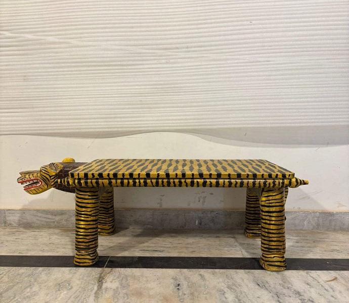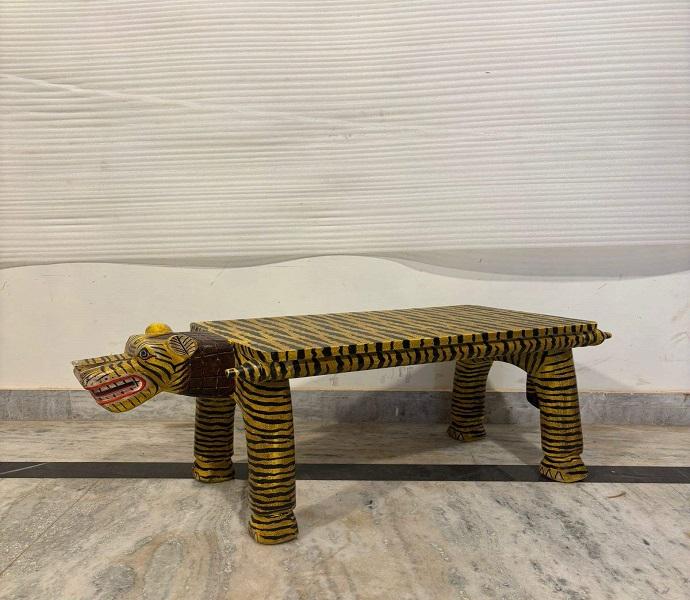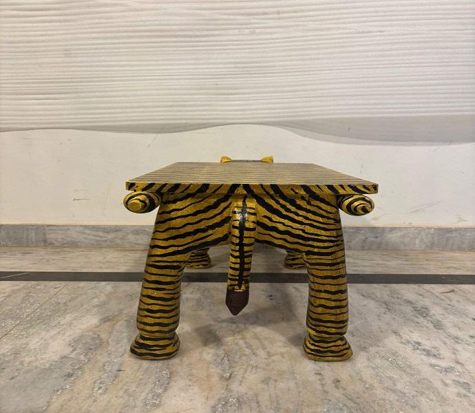 Tabouret en bois motif tigre, table basse décorative peinte, meuble d'appoint pour l'intérieur du salon