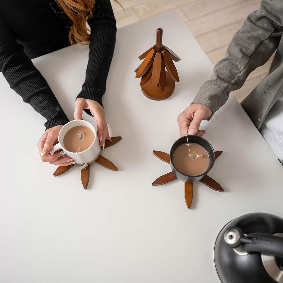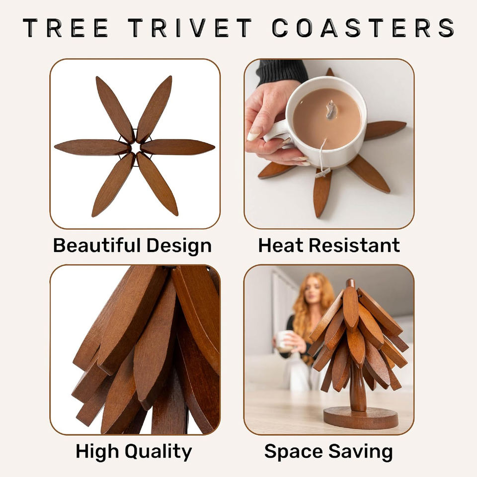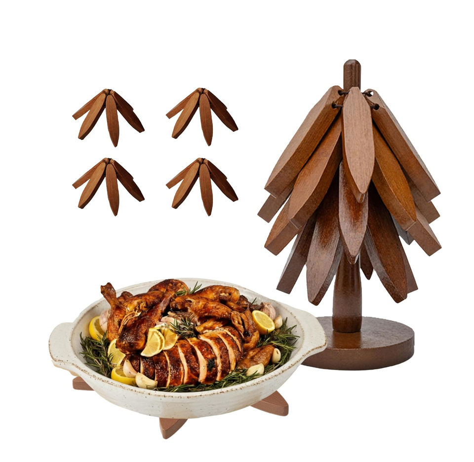 Sous-verres et support en bois en forme d'arbre, 4 dessous-de-plat résistants à la chaleur pour casseroles et plats chauds, décoration de cuisine en noyer