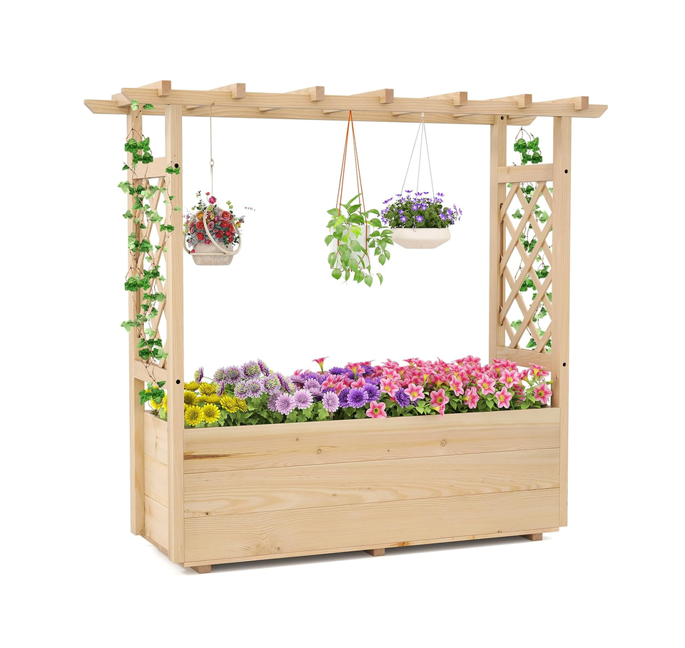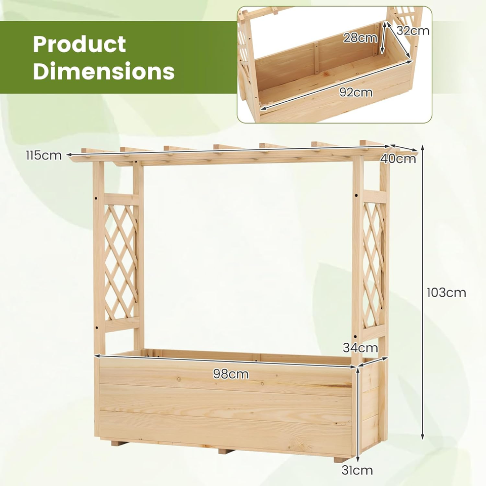 Panneau de treillis en bois avec grille pour plantes grimpantes, jardinière de patio, bac à fleurs pour patio et jardin, plantes et végétaux grimpants