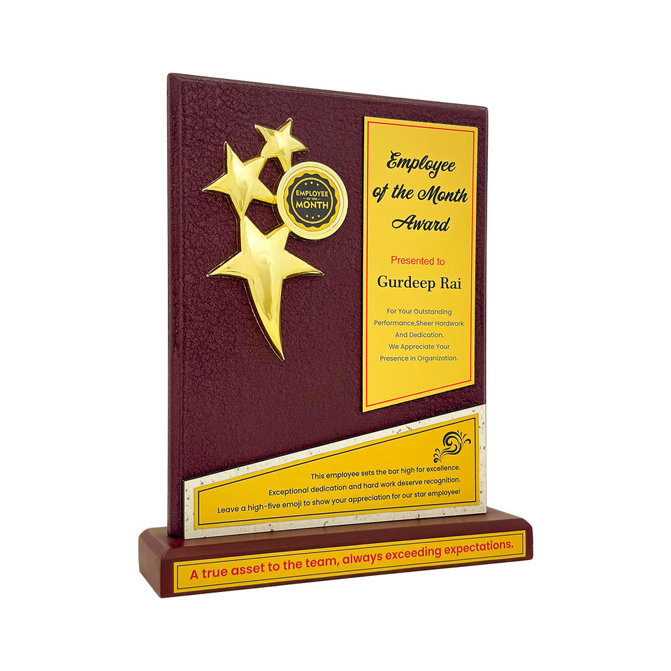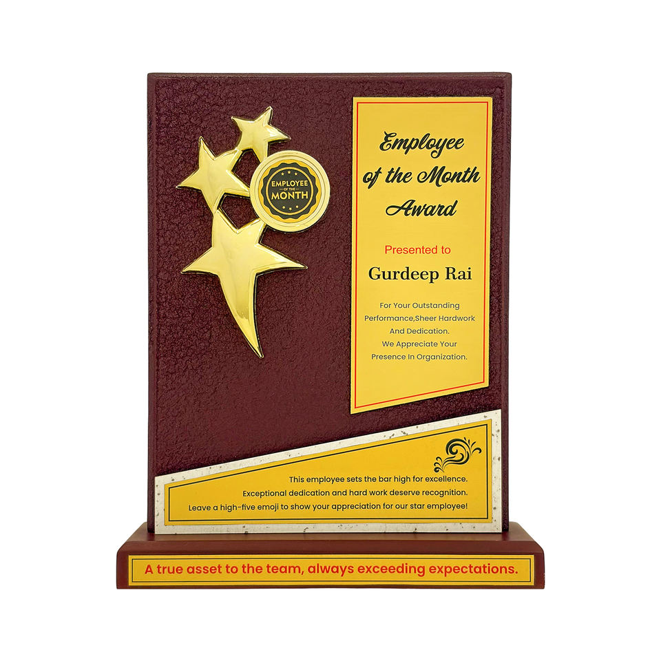 Trophée en bois Premium Wrinkle Design 12MM avec trophée 3D 3 étoiles pour événements d'entreprise