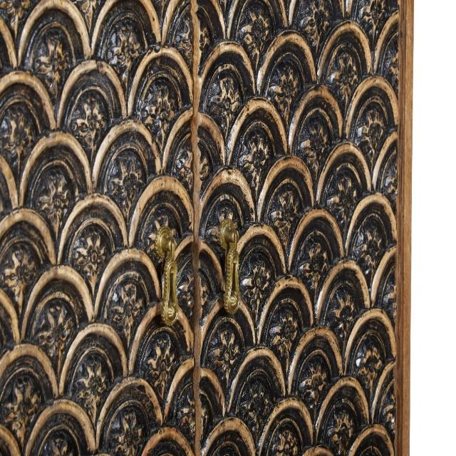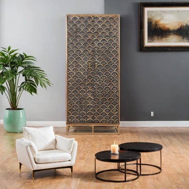Armoire en bois avec portes à motifs géométriques | Armoire de rangement avec base métallique, armoire de chambre à coucher de luxe