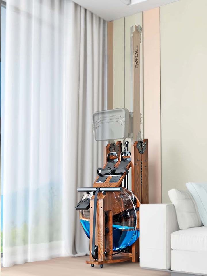 Rameur à eau en bois pliable robuste pour la maison et la salle de sport, équipement d'entraînement cardiovasculaire intérieur pour un entraînement complet du corps