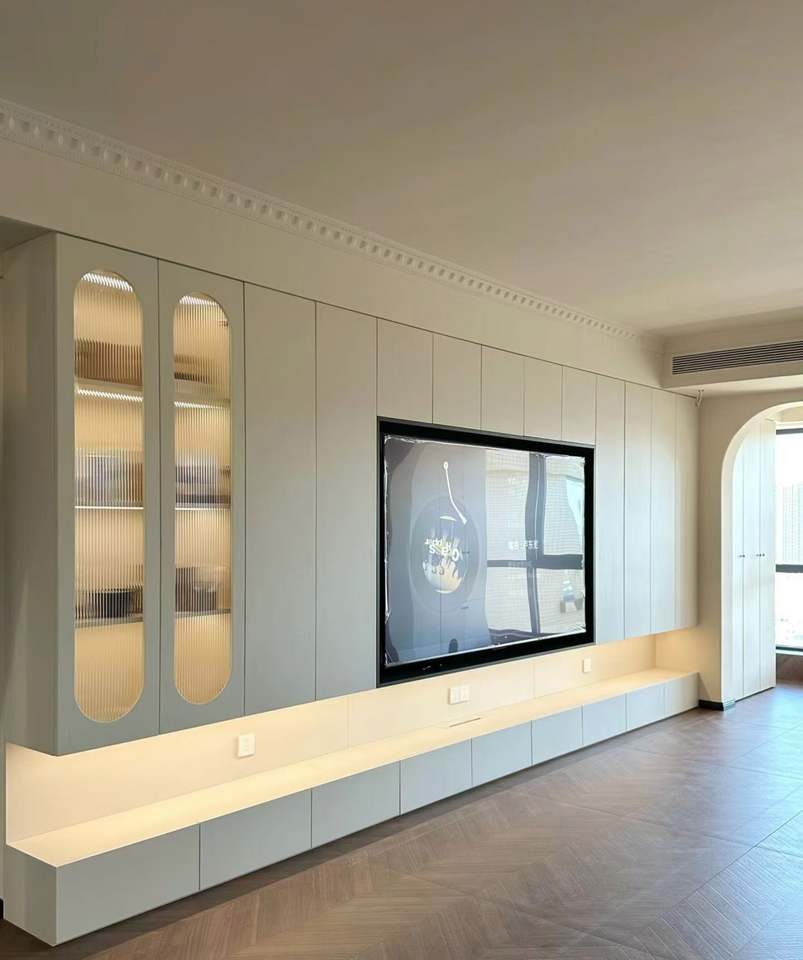 Meuble TV en bois blanc Ensemble de meubles de salon Designs Unité murale moderne Designs Meuble TV