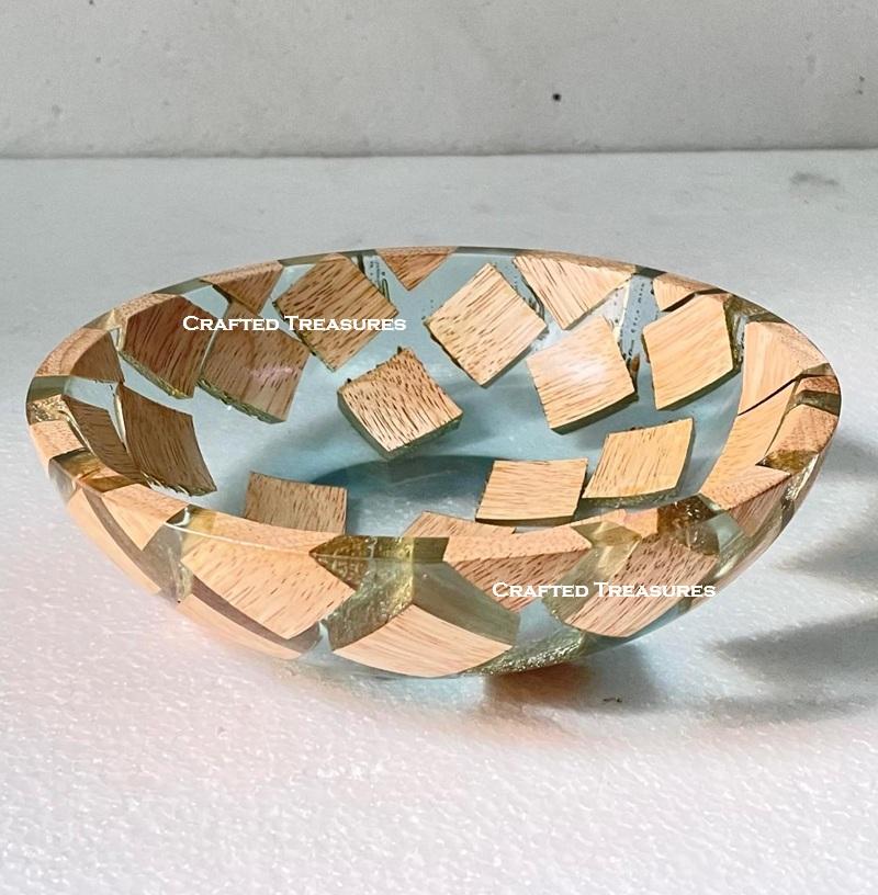 Wooden Wholesale Premium Quality Handmade Resin Wood Salad Bowls Stylish Dry Fruits Soup Dinnerware Love Style Figurine Model