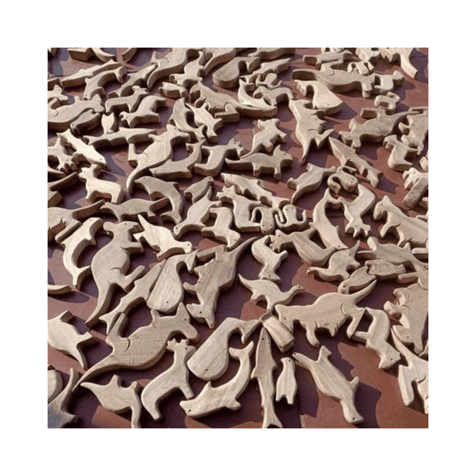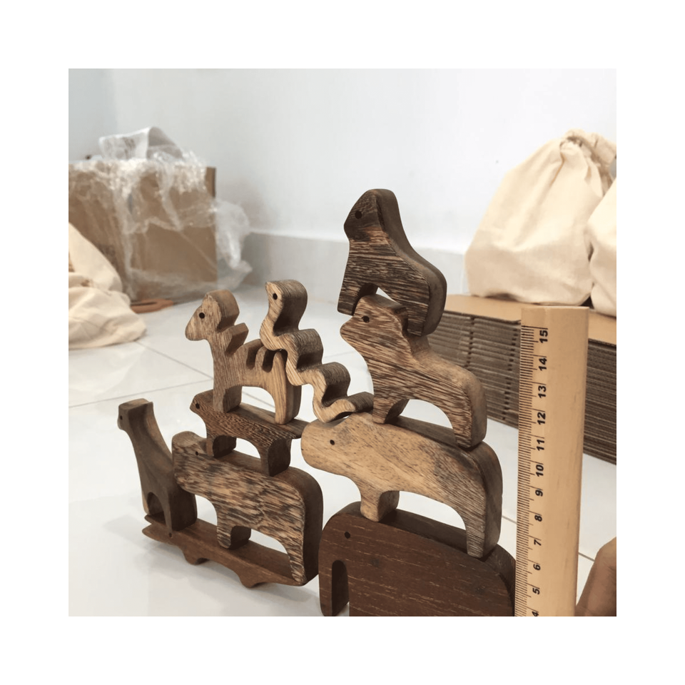Wooden animal toy paulownia wood lightweight herd with printed details for classroom kits and decor styling, from Vietnam origin