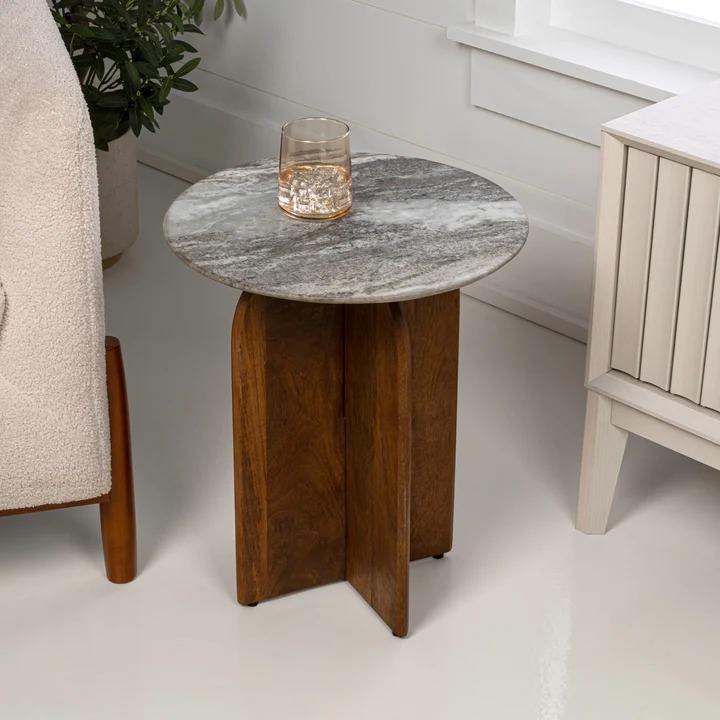 Table basse en bois rustique minimaliste ronde en marbre et bois