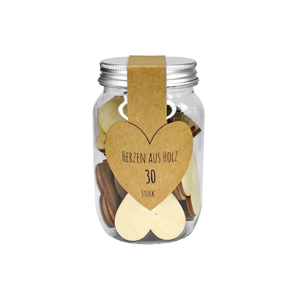 Wooden hearts for handicrafts in a screw-top jar 30pcs