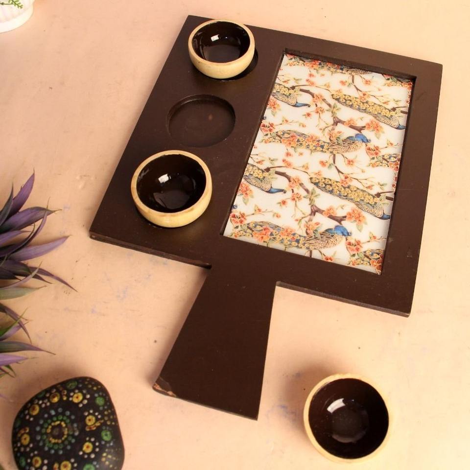 Plateau en bois requl sculpté à la main plateau de service artisanat indien traditionnel maison cuisine décor décoratif art populaire utilitaire