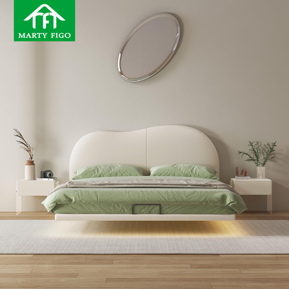 Wooden Sleep Bed Frames Bases with Light Headboard Popular Modern Hardwood Hotel Upholstered Platform Solid Wood Mattress Beds