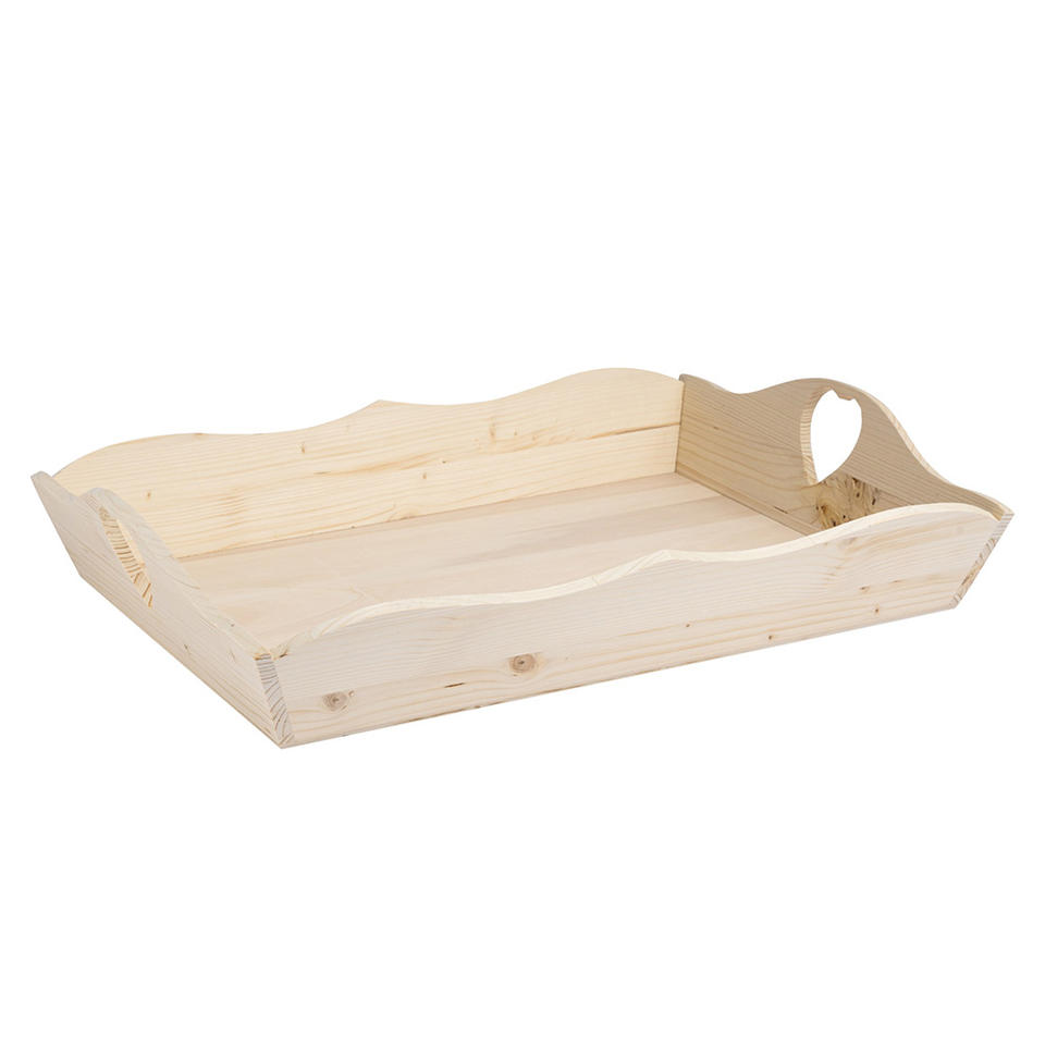 Wooden tray. Internal measurements: 58X41X12 CM with flared and shaped sides . Heart-shaped hole