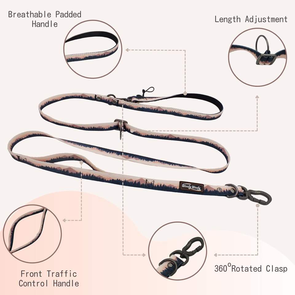 Woofy 6In1 Multifunctional Hands Free Leash, Adjustable Length 6'7", Twilight Forest Print, For Small, Medium, And Large Dog