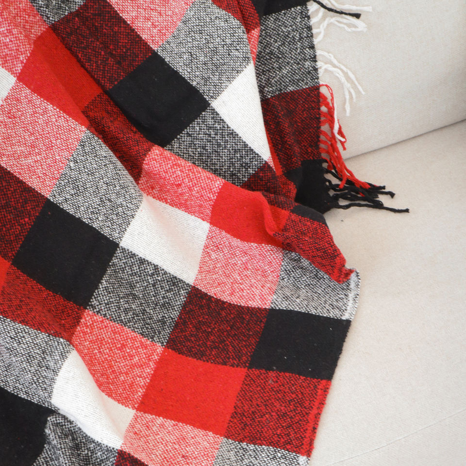 Couverture à carreaux en laine mélangée en rouge noir et White-140x200 cm doux Plaid jeter confortable canapé lit cadeau taille personnalisée tissé techniques