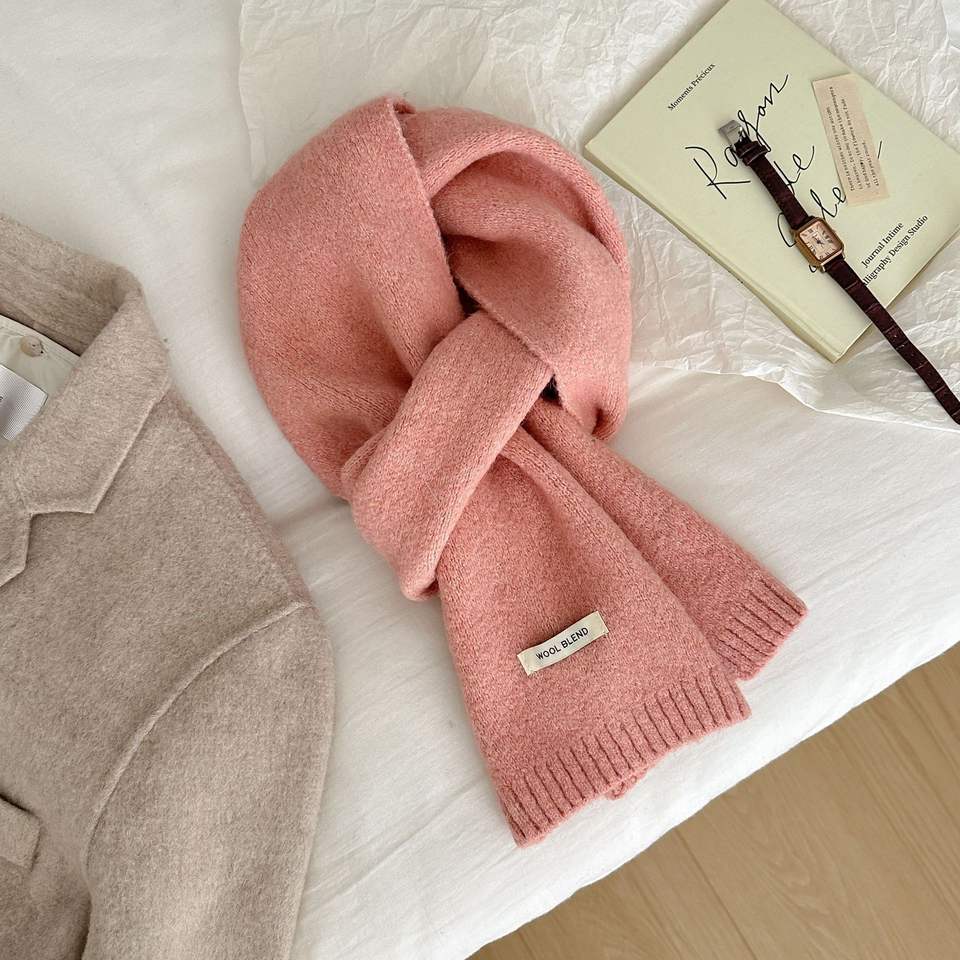 Écharpe en laine mélangée rouge, longueur courte à moyenne, style coréen, pour femmes, réunion annuelle d'hiver