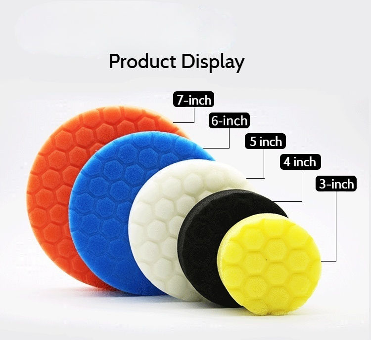 Ensemble d'éponges de polissage et de cirage pour voiture en laine, motif hexagonal, tampons de polissage inclinés et enfoncés, tailles 3/4/5/6/7 pouces