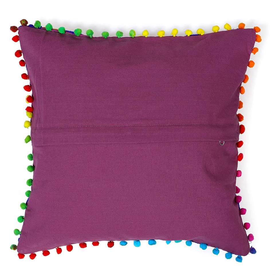 Wool Embroidered Cotton Cushion Cover Handmade Indian Square Suzani Pillow Case 16 X 16 Inch Best Quality Material