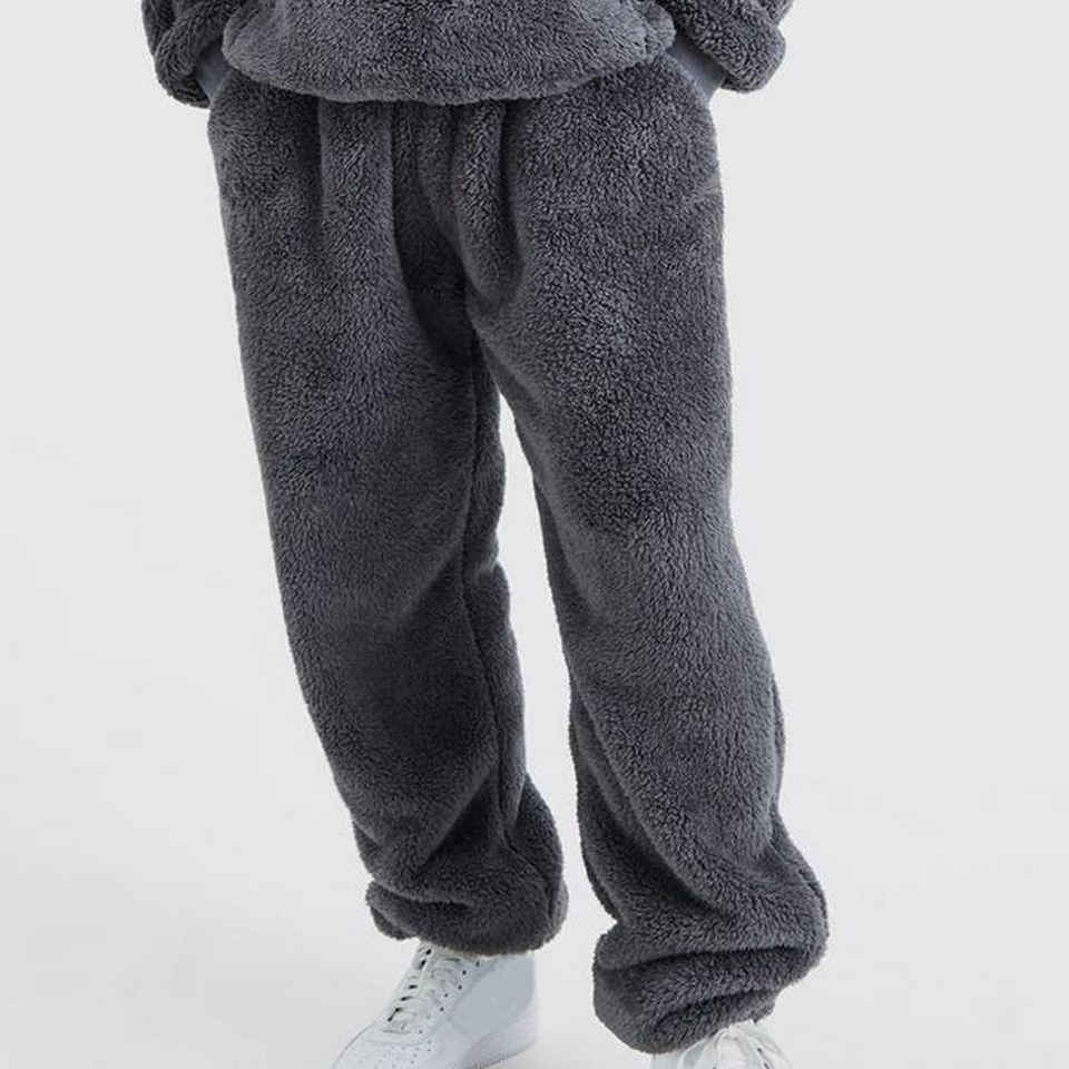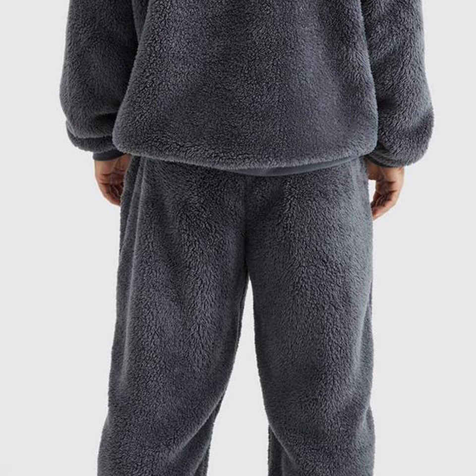 Ensemble de survêtement en laine polaire pour hommes hiver sweat à capuche de style solide style de rue imprimé grande taille avec cordons de serrage