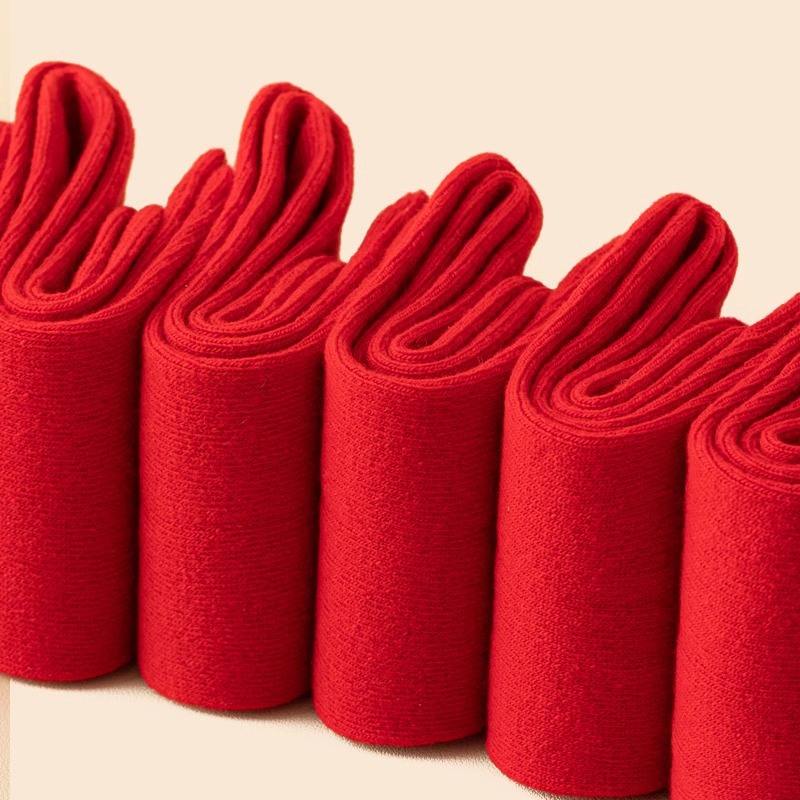 Wool Socks 48% Wool Solid Color Medium Thickness Winter Warm Red Women's Socks New Year Wedding Festive Socks Zhuji