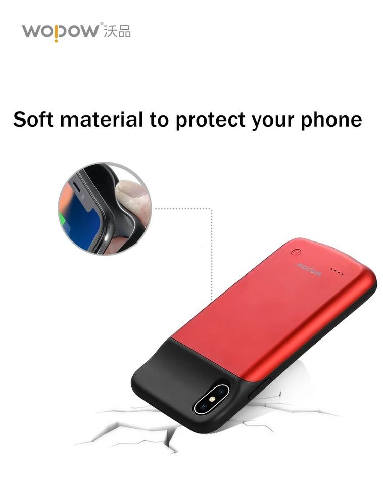 Wopow PB08 3200mAh 20W Li-Polymer Battery Ultra Slim Backup Power Bank Case with LED Display & Quick Charge for iPhone X