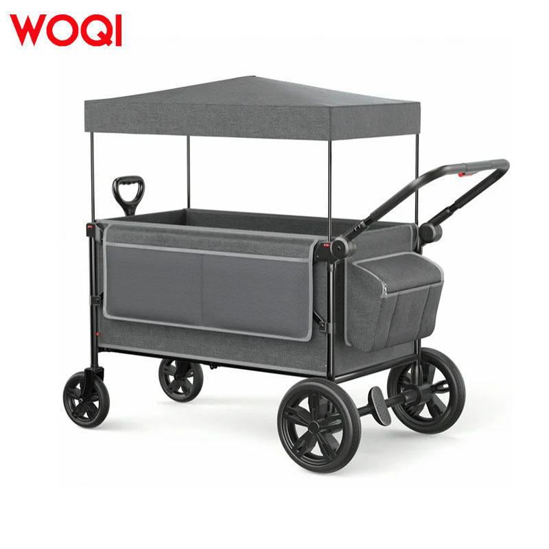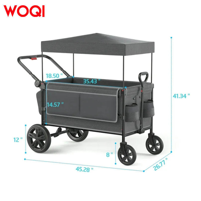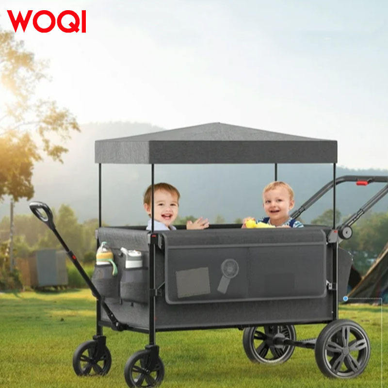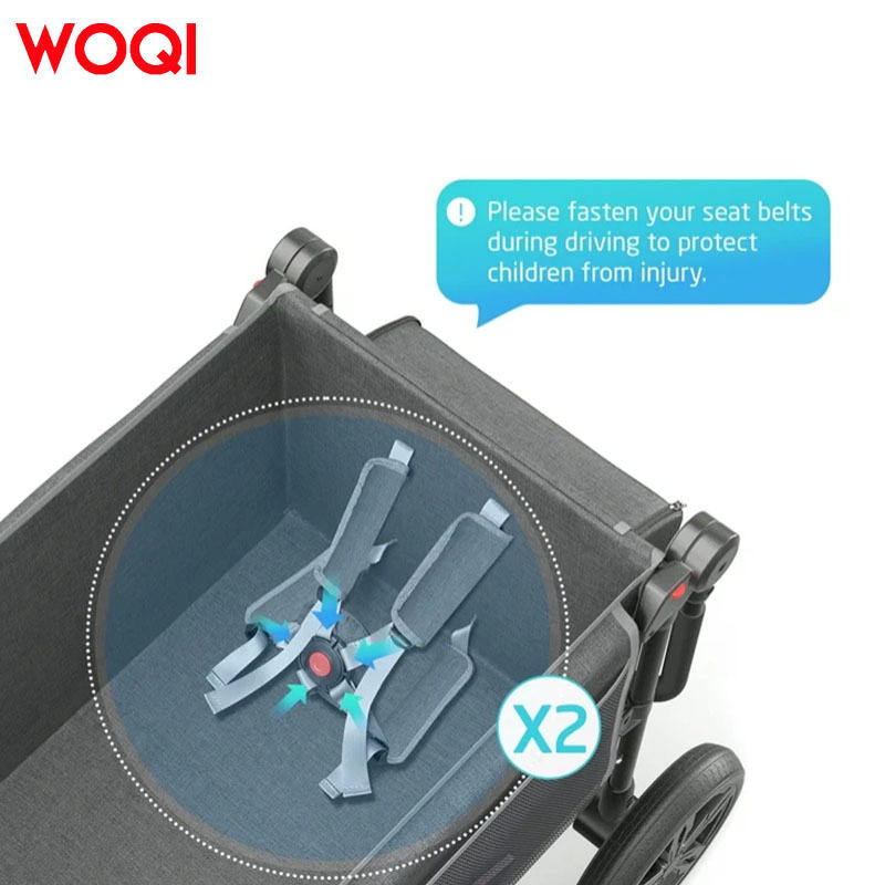 Poussette bébé Woqi avec capote, 2 places, pliable, cadre en alliage d'aluminium, gris, 115x68x105 cm