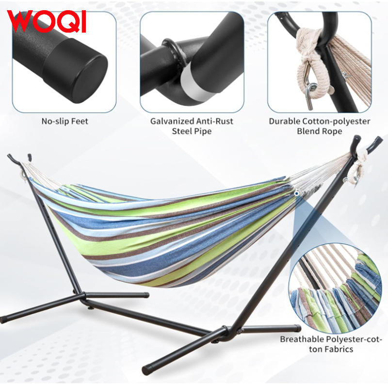 Hamac Woqi avec structure métallique, portable, pour plage, camping, voyage, en tissu coton, capacité 250 lb