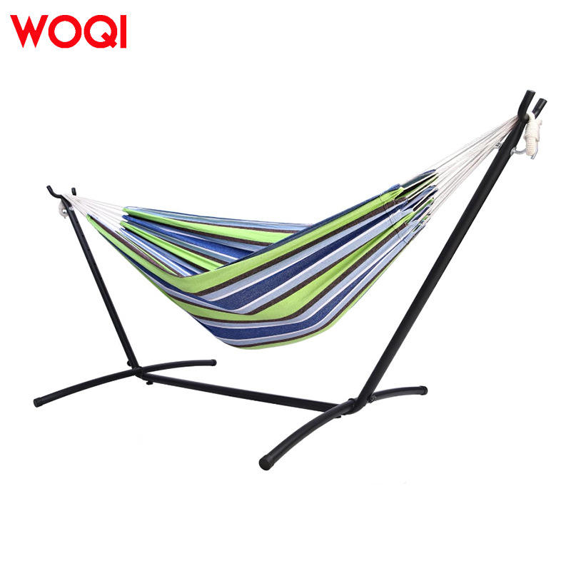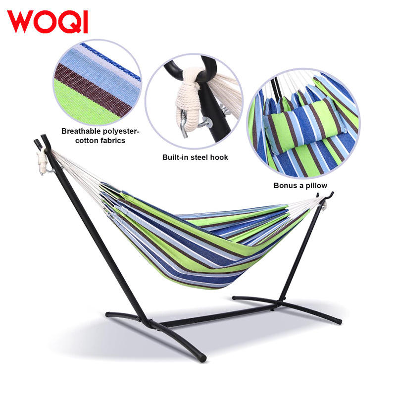 Hamac Woqi avec structure en acier, tissu en coton portable, pour le camping, le jardin, la terrasse et l'intérieur
