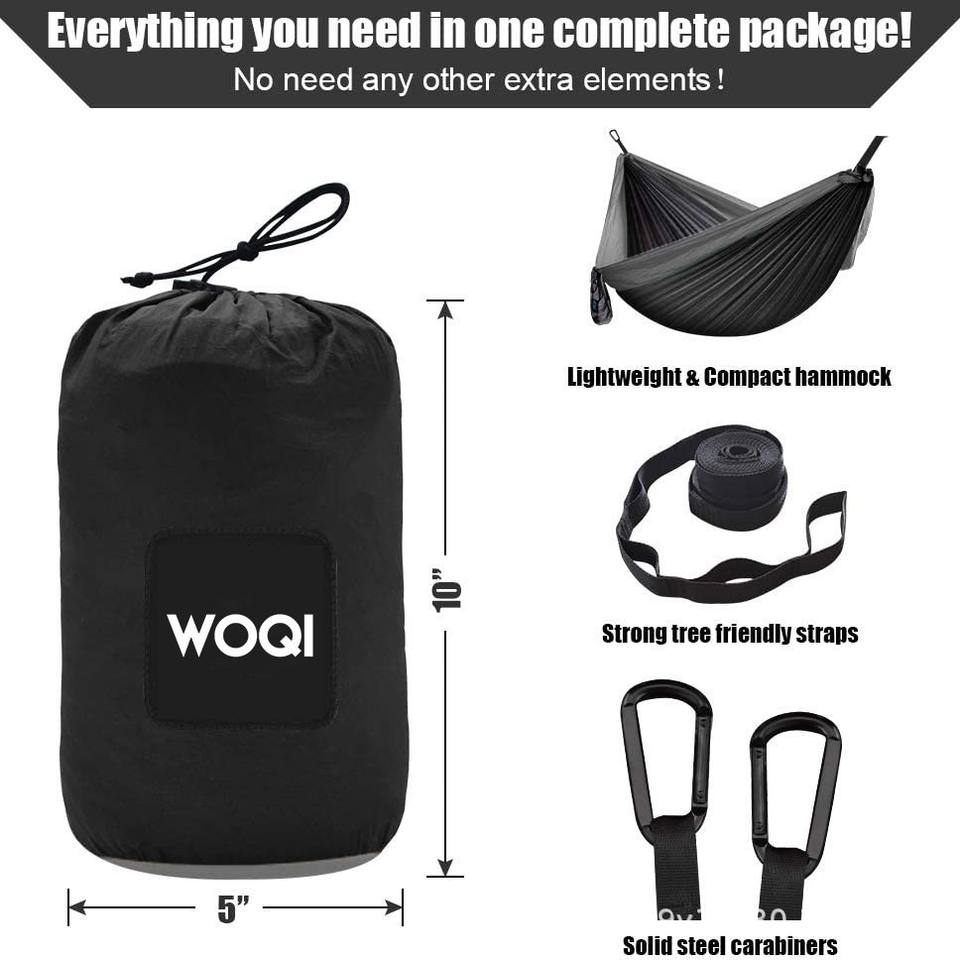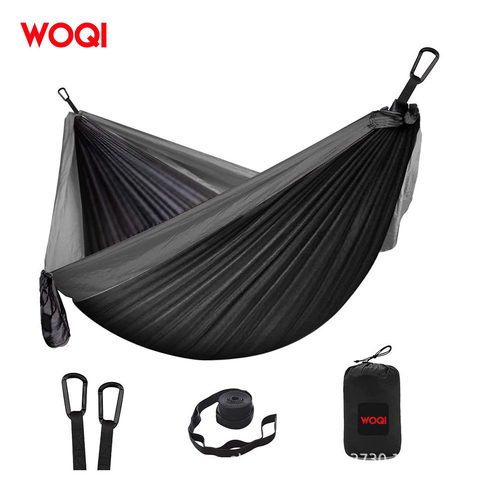 Hamac de camping extérieur Woqi en nylon Ripstop, capacité de charge de 226 kg, portable, simple ou double, noir, design minimaliste
