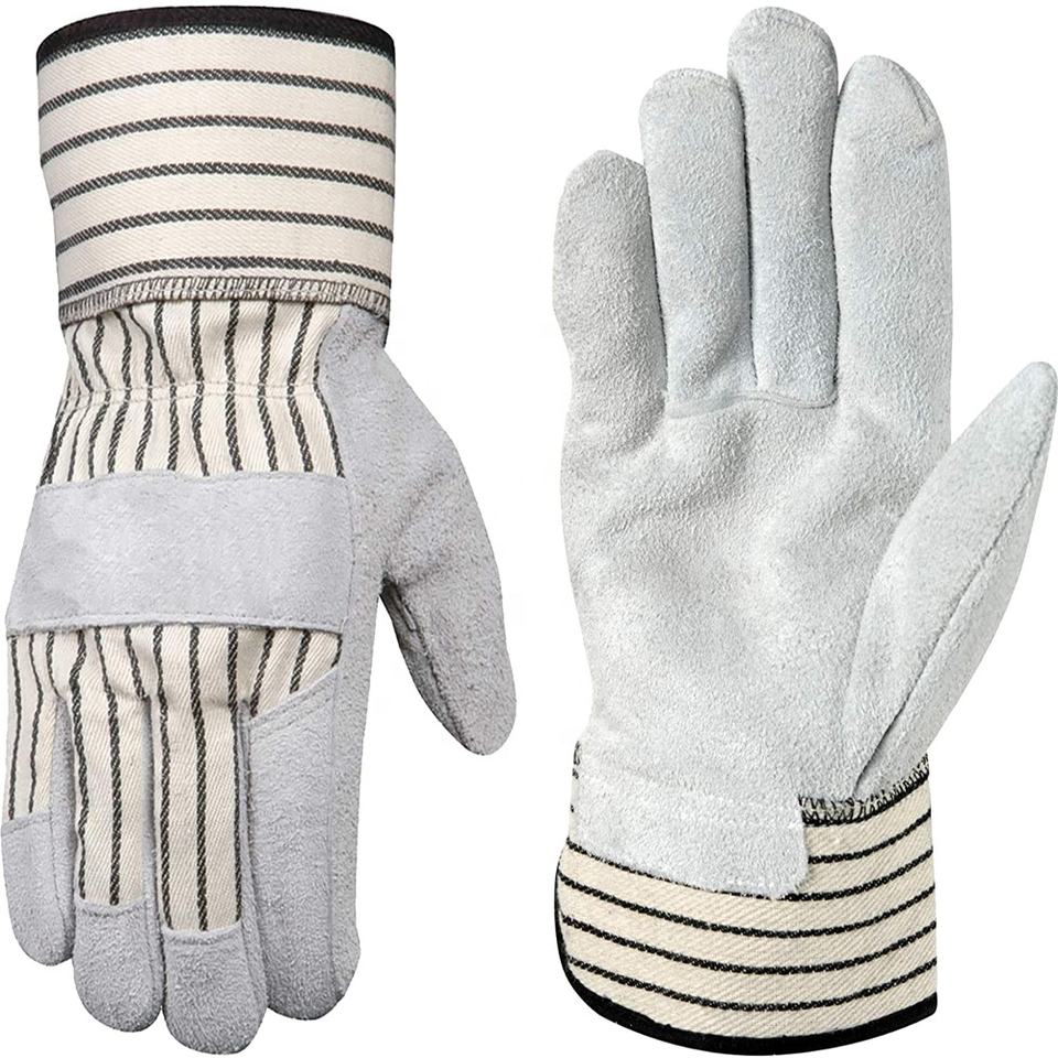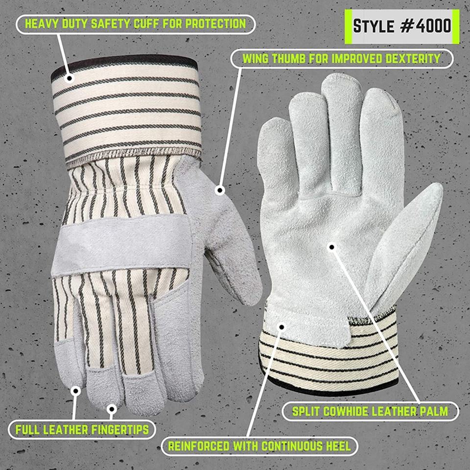 Gants de travail d'hiver robustes Anti-coupure Blanc/Noir Protection de la manchette de sécurité Cochon renforcé Cuir de vachette fendu Confortable