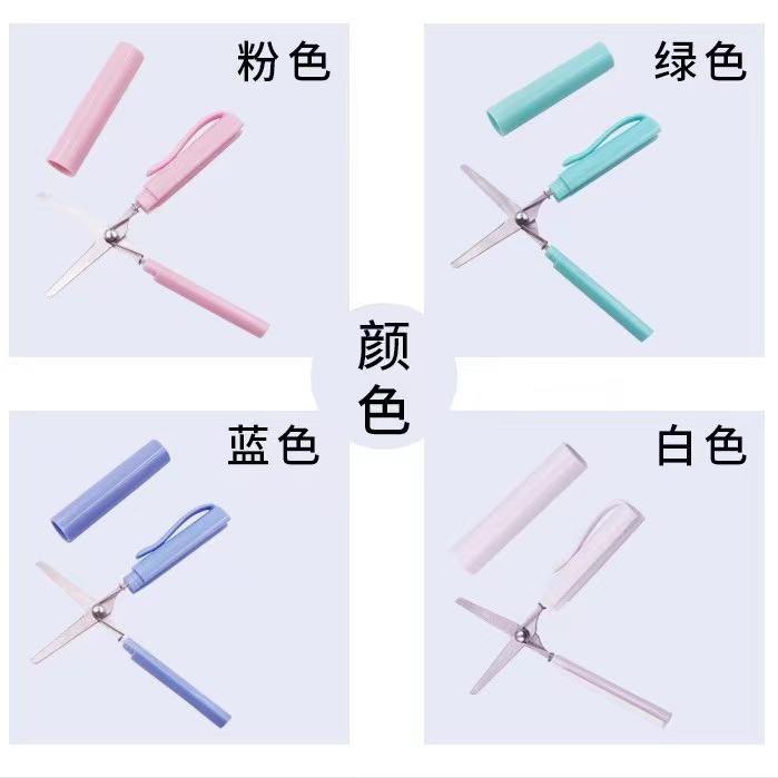 Work Record Foldable Pen Style Scissors Pink Green Blue White Plastic Handle Straight Blade For Students Travel Office Home Use