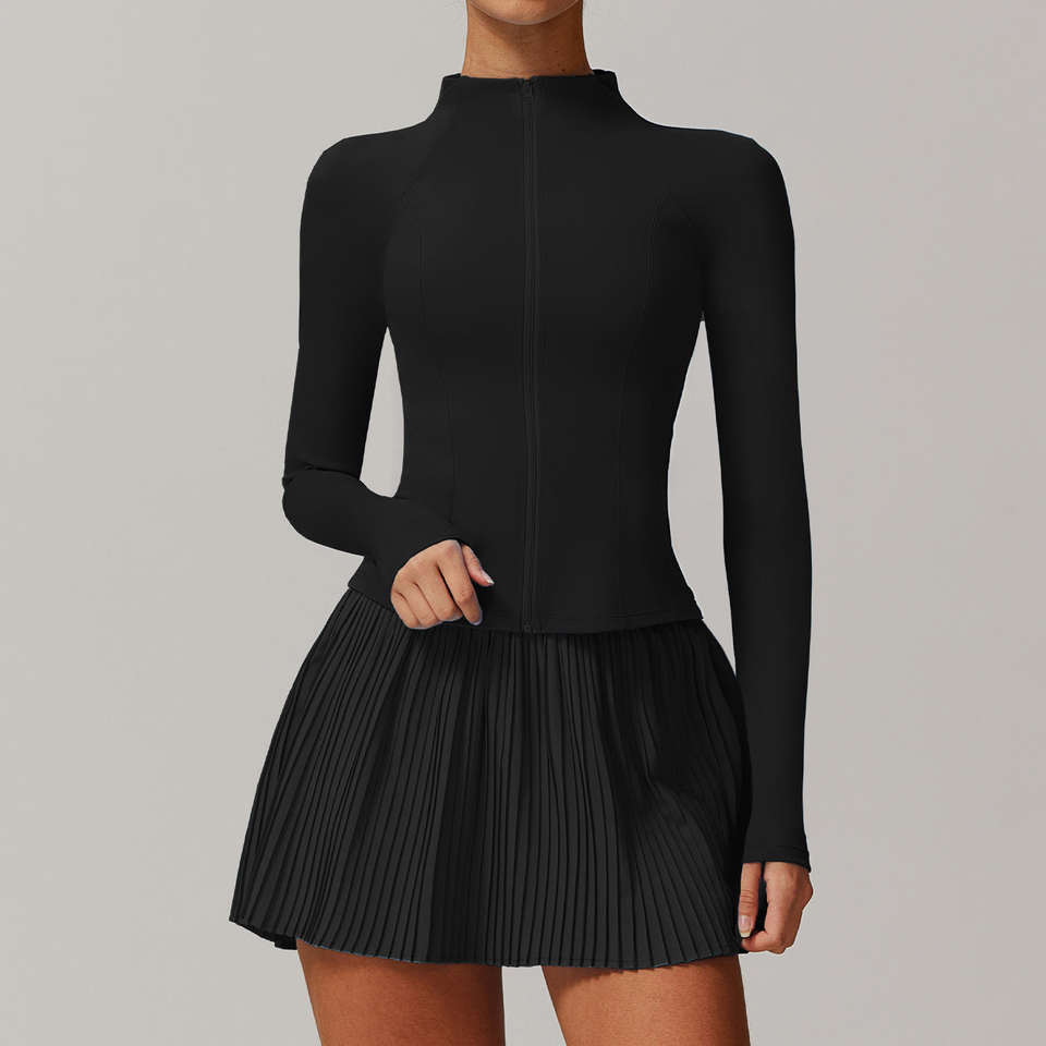 Veste de sport légère à fermeture éclair, manches longues, col montant, veste de yoga courte, coupe ajustée athlétique